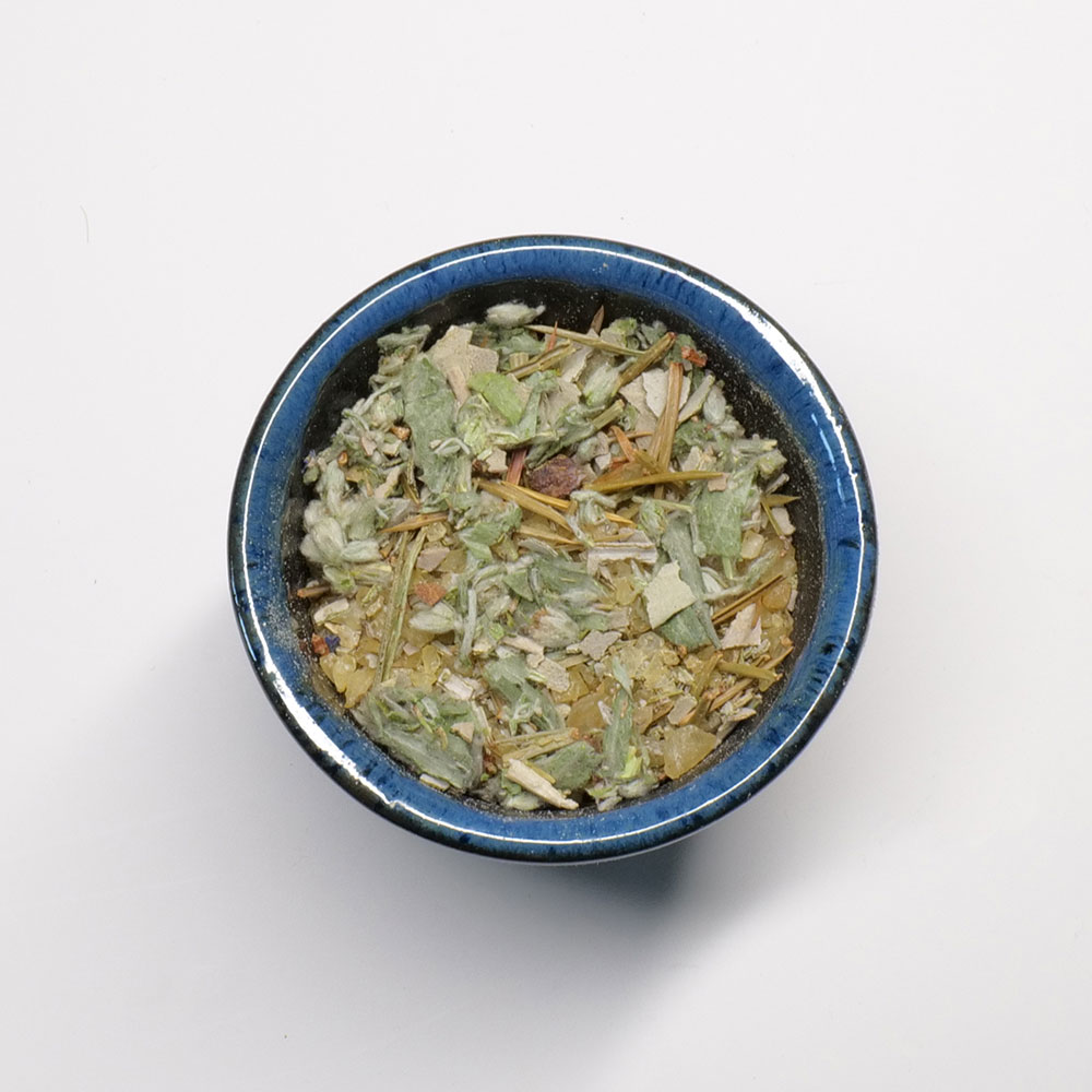 Diese stark wirksame Räuchermischung kann eine heilende, kräftigende und stabilisierende Atmosphäre erzeugen. Sie ist für meditative Zeremonien und Heilrituale geeignet, ebenso um nach einer Schwitzhüttenzeremonie zu räuchern. Diese indigene nordamerikanische Mischung reinigt innerlich, stabilisiert und stärkt.