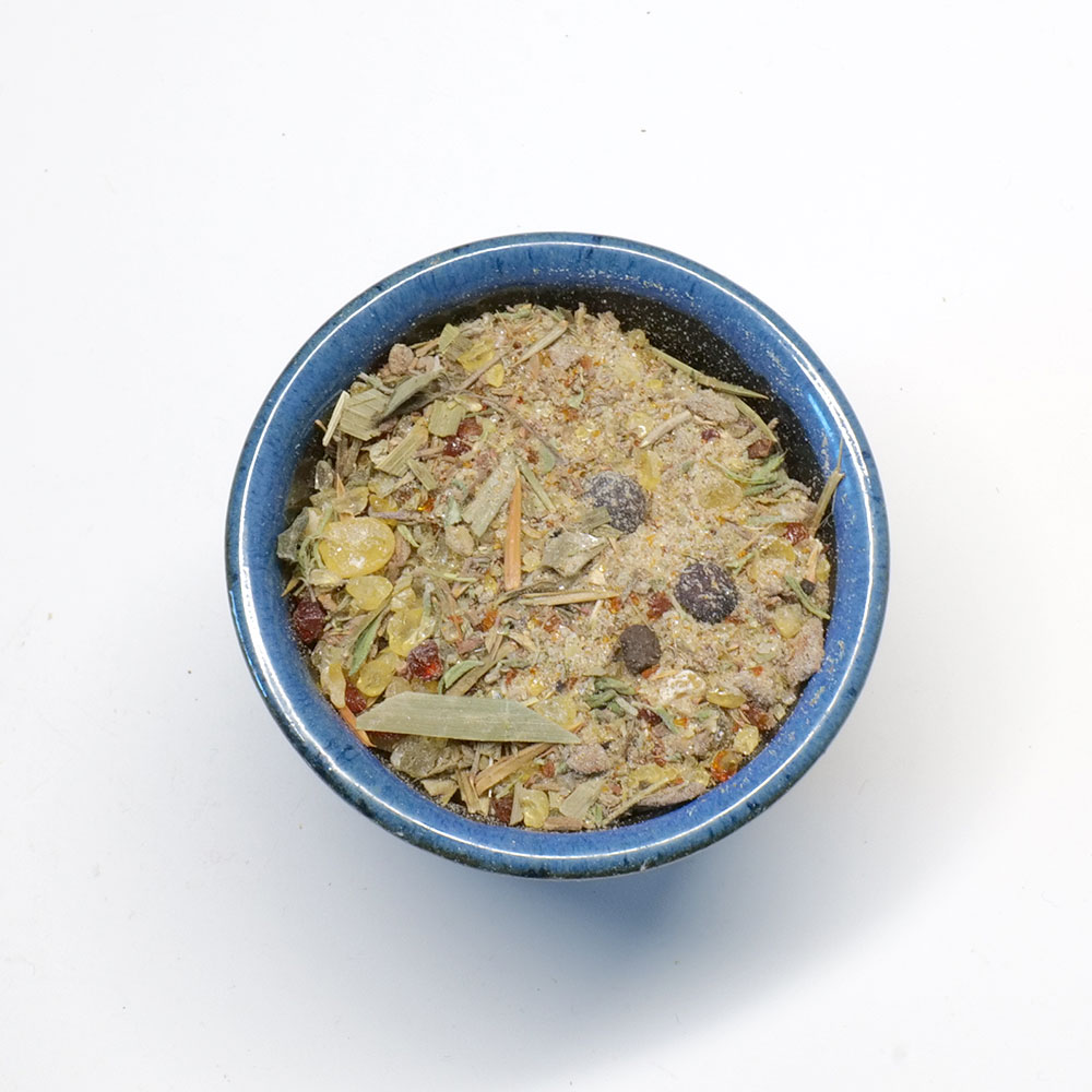 Inhalt: Sandarakharz, Wacholderholz, Wacholderbeeren (Weiheicheln, Knistebeeren, Heilige Beeren), Wacholderspitzen, Bernstein, Beifußkraut, Mariengras, Thymian, Baldrianwurzel, Eschensamen (handgeschält)