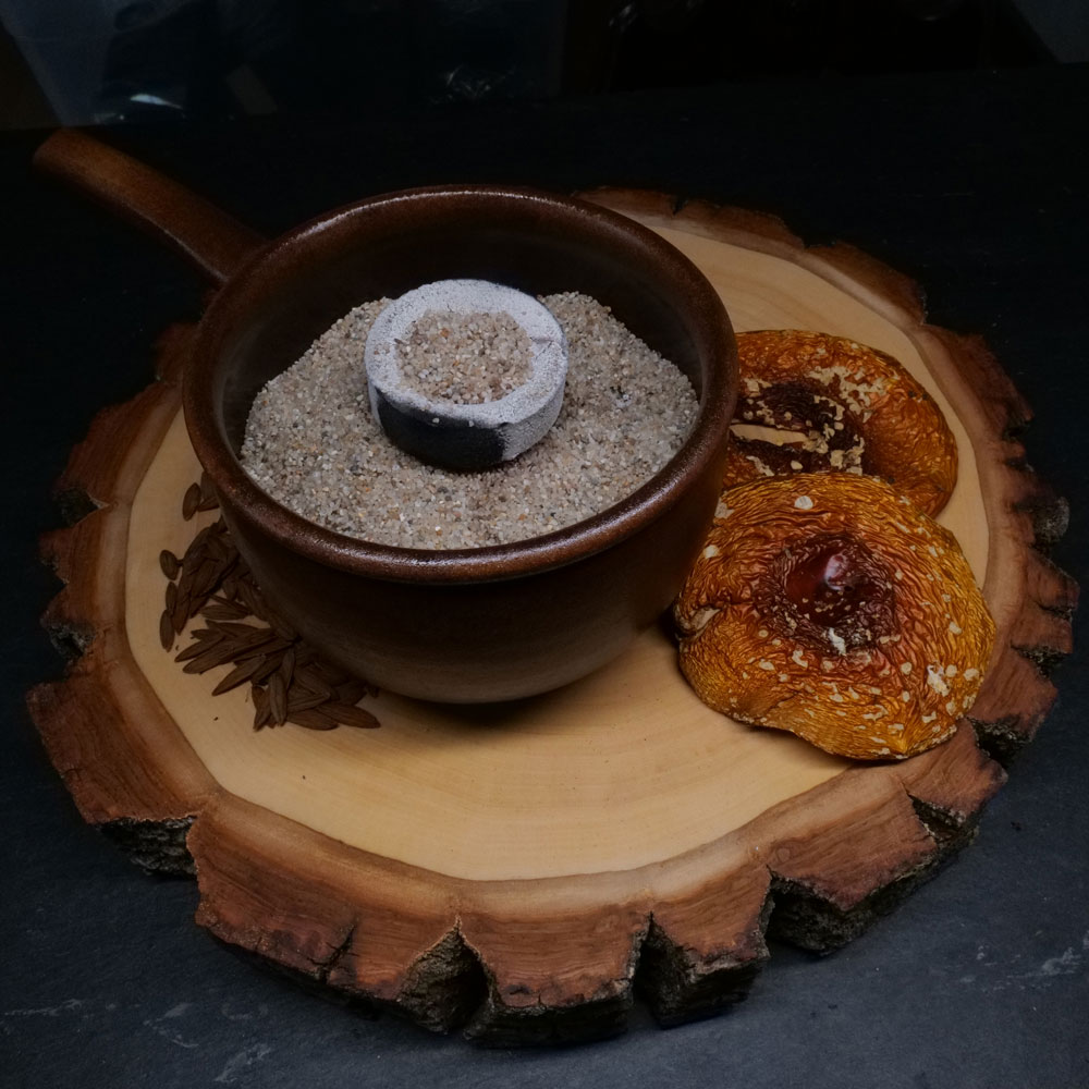 Die Räucherschale muss bei Gebrauch stets mit mehreren Zentimetern Sand befüllt sein und auf einer hitzebeständigen und feuerfesten Oberfläche stehen.
